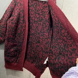Belle by Kim Gravel Intarsia Animal Cardigan with Pockets Rumba Red Size Large