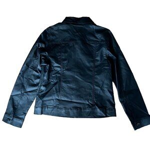 Belle by Kim Gravel Coated Twill Jean Jacket Black Pockets Buttons sz XS A520293