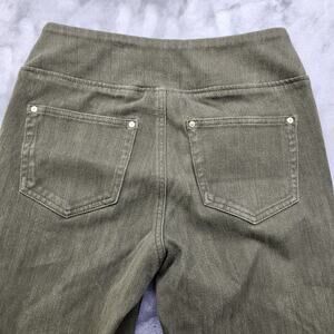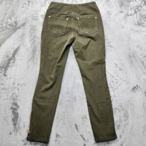 Belle by Kim Gravel Jeans Womens 4 Green Gold Zip Hem Flexibelle Pull On Skinny Ankle Stretch