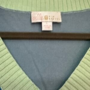 Belle by Kim Gravel Large Knitted Sweater V-Neck Color Block Casual Comfort