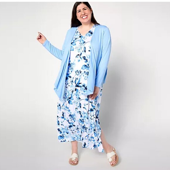 Belle by Kim Gravel Petite Better Together Dress and Shrug Set-Indigo Rose