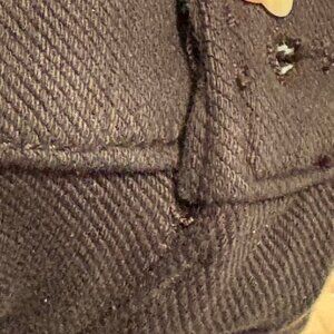 Condition: I kept noticing that there were loose threads near the top inside fake zipper area. It took me a while to figure out what was wrong. There is a tiny hole but the seam flap is right behind it so, it’s really hard to see it. It will never be noticeable from the outside because first, its under the top flap of the fake zipper opening and second the seam behind it keeps it black, so it doesn’t show through to your skin or underwear.
