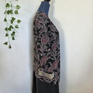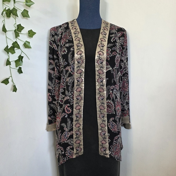 Cardigan dressy casual work office everyday classic timeless style everyday black velvet Embroidered bohemian boho