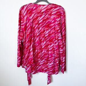 Belle by Kim Gravel Printed Slub Knit Cardigan Shrug & Tank Set Pink Abstract XL
