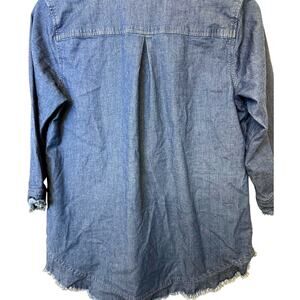 Belle by Kim Gravel QVC Sz 8 Chambray Top Jacket Shacket w/ Fray Hem Classic
