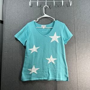 Belle by Kim Gravel Star Short Sleeve Sweater Blue Size Small