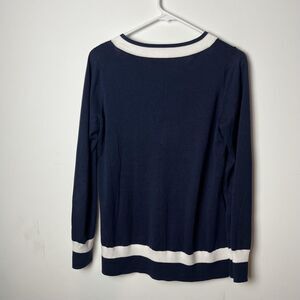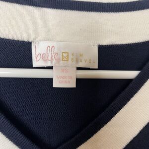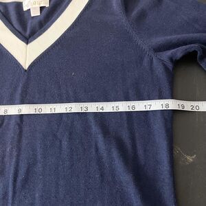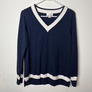 Belle by Kim Gravel Sweater Womens XS Navy White V Neck Contrast Trim Pullover