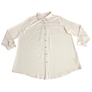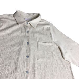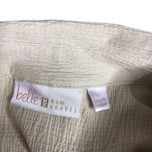 Belle by Kim Gravel Top Womens 1X Beige Crinkle Tunic Collared Button Up Boho