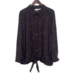 Belle by Kim Gravel TripleLuxe Knit Cheetah Print Tie Front Shirt. Very good pre-owned condition!