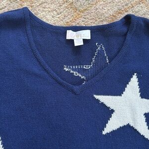 Belle by Kim Gravel Women’s Navy Blue Knit Star Short Sleeve Sweater Top Size S