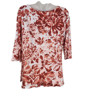 Belle by Kim Gravel Women's Top Small Marsala Coral Slub Knit Floral Brushstroke