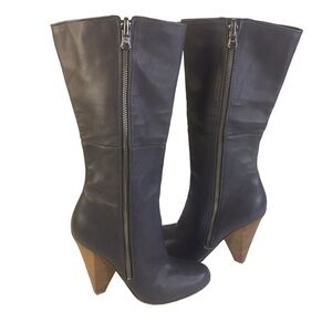 Belle by Sigerson Morrison gray leather mid calf 4” heeled boot size 6