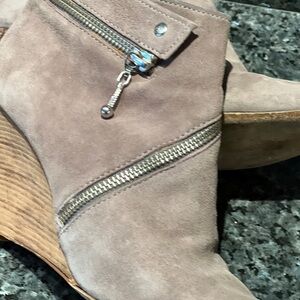 Gorgeous suede booties with a fun zipper detail. Size 9, true to size. Gently worn in Great condition.