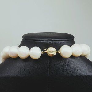 Belle de Mer White Opaque Cultured Pearl Strand Necklace 18" 11-13MM 14K