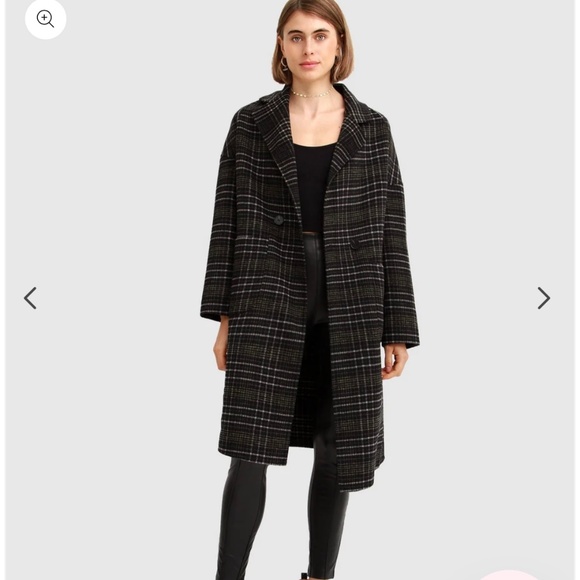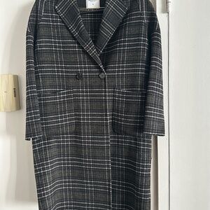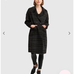 Belle&Bloom Publisher Double-Breasted Wool Blend Coat - Black Plaid size L - Excellent condition!