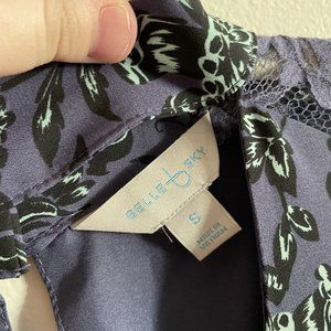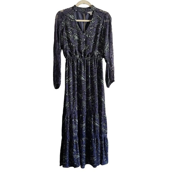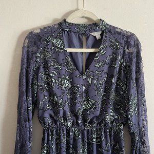 Belle+Sky Womn S Blue Floral Lace Detail Boho High Neck Cutout Tiered Maxi Dress