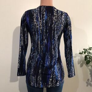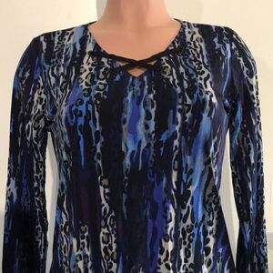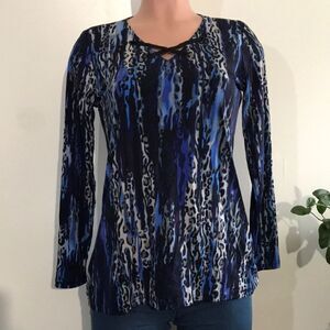 Belle by Kim Gravel Camo Print Top with Ribbon Neck Trim