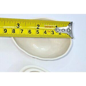 Delicate china ivory trinket box in an elegant egg shape. Hand-painted with vibrant yellow daffodils and green clovers, it's ideal for storing small items while adding a touch of charm to your display. Durable and lightweight, it combines functionality with artistic flair. Has the Black Belleek stamp