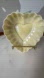 Beautiful, vintage Belleek scalloped edge heart-shaped trinket dish with a lustreware finish on the inside. This pottery piece was made in Ireland and has Belleek's green fourth mark, indicating it was made between 1946-1955. The outside is cream, and the inside is a very light yellow shade.