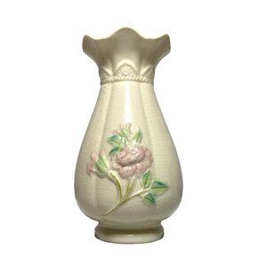 Belleek Ireland Porcelain Vase With Raised Floral Design Irish Fine Parian China EUC