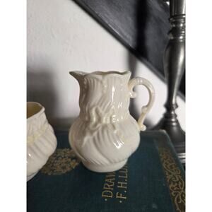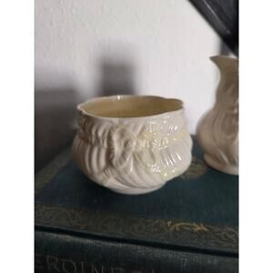 Belleek Ribbon Bow Creamer and Sugar Set Ireland Ivory Parian Porcelain Vintage