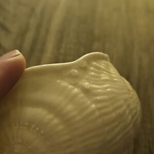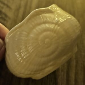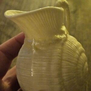 This is a vintage Belleek 'Toy Shell' or 'Nautilus Shell' creamer and sugar bowl set in a pale yellow luster glaze.