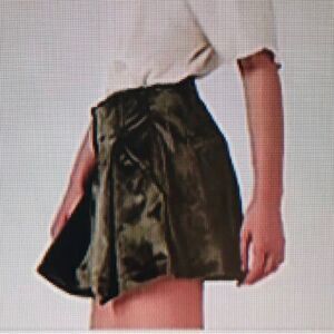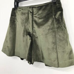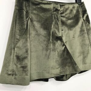 Bellenista Olive Green Velvety Holiday Wide Leg Skirt Shorts