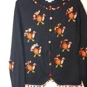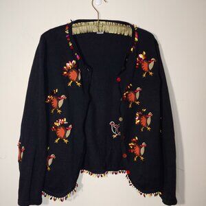 Bellepointe Vintage Embroidered Button Up Cardigan Size XL Black