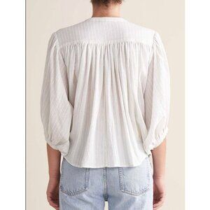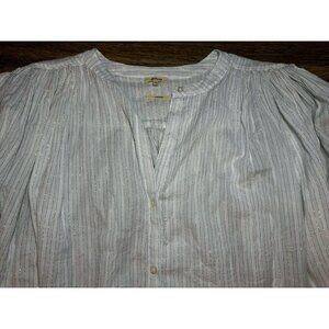 Bellerose Ink Top Blouse White Blue Metallic Stripe Half Sleeve Size 1 or Small