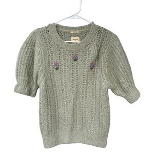 Bellerose Italian Yarn Alpaca Wool Short Sleeve Sweater - Size 2 - Green Floral