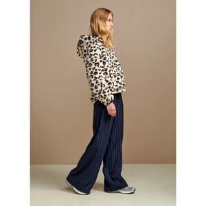 Modern and sporty. Teddy lining for softness and adjustable hood and waist drawstrings. Faux fur. Waist-length reversible hooded jacket. Zip closure and side pockets.