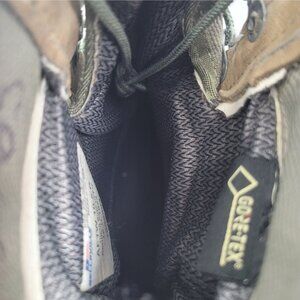 Durable military-grade combat boots with Gore-Tex lining, offering water resistance, breathability, and comfort. Suede and nylon construction ensures rugged performance in outdoor settings.