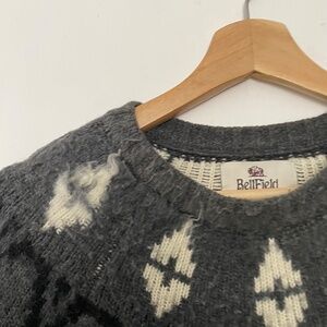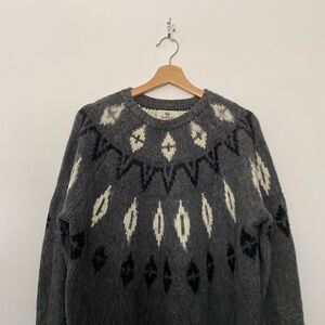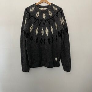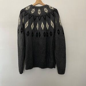 Grey knit crew neck sweater with white pattern. Size large. In good condition.