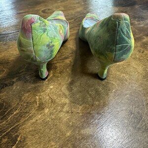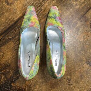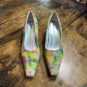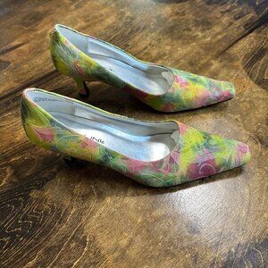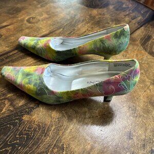 Bellini Floral Pointed Square Toe Kitten Heels Size 9.5M Embossed Leather Fairy