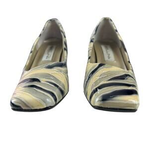 Bellini Margie Pumps Women Size 9M Cream Black Gray Patent Leather Classic Heels