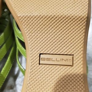 Lime green leather straps and insole on woodgrain/rubber sole. Floral velcro decorative flower. Size 8W Excellent condition, never worn.