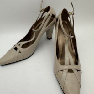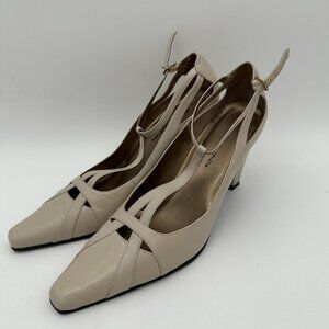 Bellini Womens Cream Leather Heels Size 8.5 With Box