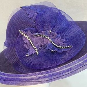 Bellini Womens Hat Purple 100% Wool Wide Brim Ribon Lace Rhinestone Band