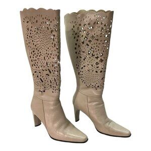 Bellini white leather laser cut tall heeled boots Women's Size 6.5 M