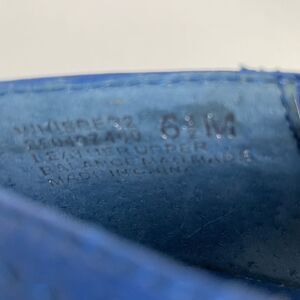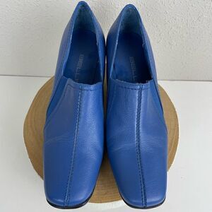 Super fun and stylish pair of blue leather heels in excellent preowned condition.