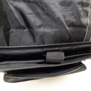 Bellino black leather vertical leather case. the reporter style..made for paramount pictures. inside credit card compartment that zips..back zip compartment ,cushioned laptop sleeve that you can velcro close....black leather..has that vintage feel to it. lined..top grain selected leather. well thought out piece! 14hx13w2.25d