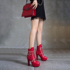 [Style type]: Fashion punk combat booties for women chunky high heels platform knight ankle boots with buckled.