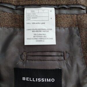 Bellissimo Blazer 40R Brown Windowpane 100% Wool Sport Coat Jacket