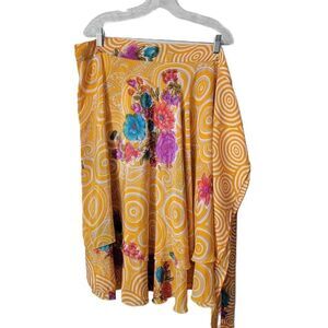 Bellissimo Fashion Floral Swirl Multicolored Mid Length Silk Blend Wrap Skirt Medium