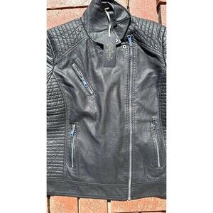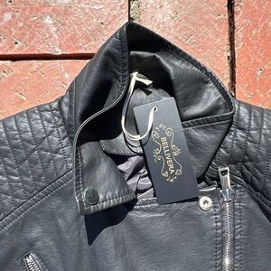 Bellivera Jacket Womens XXL Black Faux Leather Cropped Biker Jacket