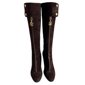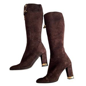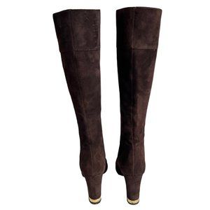 Bellofatto boots knee high brown suede zip up gold block heel size 6.5