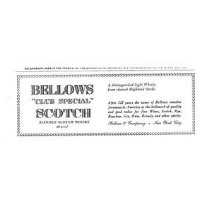 Bellows Club Special Scotch Whisky ADVERT NYC 1940s Vintage Print Ad