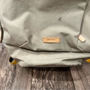 Chic Bellroy backpack in gray and yellow. Features spacious compartments and durable design. Few stains on the outside. Inside is like new 👍🏼