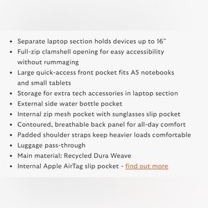 Great used condition. There are some light scratches on front of bag. See pictures. 20L size. Nightsky color.