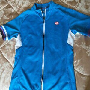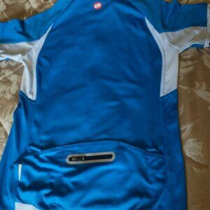 Bellwether Forza Bike Jersey is size large and in vivid cyan. It has never been used and comes with the original tags. It comes with four pockets in the back of the jersey, including one zipped pocket. It is fitted to prevent wind flap and comes with elastic stretch. It also has cooling properties to keep skin temperature down. The fabric quickly transports moisture away from the skin and also provides ventilation to optimize airflow.